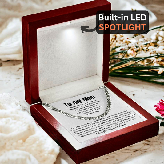 To My Man - "I Am Yours, Forever and Always" Cuban Link Chain Necklace Gift Set - MN02