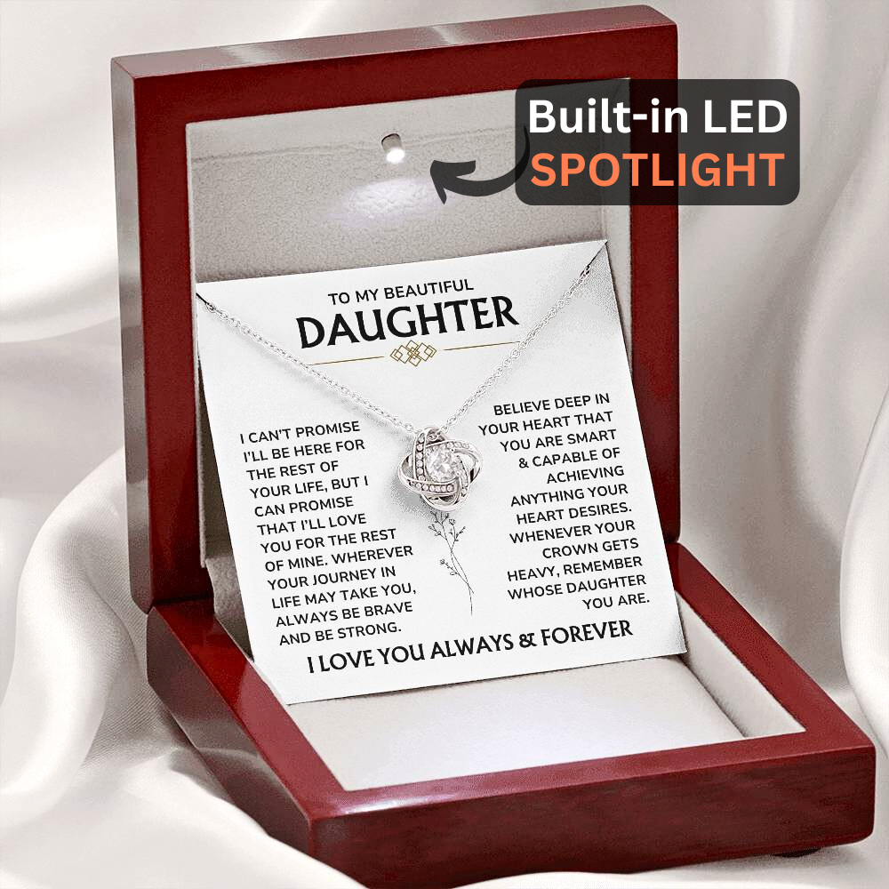 To My Beautiful Daughter - "Forever in My Heart" Love Knot Necklace Gift Set - DT02